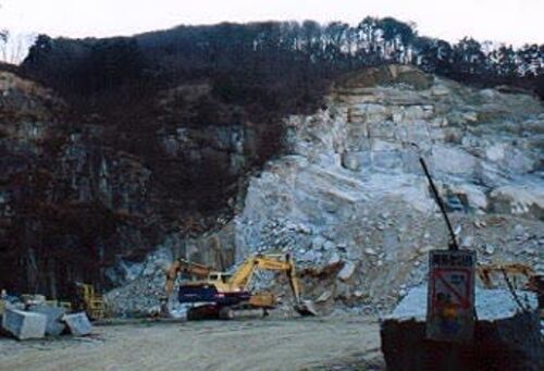 1999/12/下旬 茨城の山探訪 大岩壁が行く手に立ちはだかる。 そこを行くと怪我は必至だ。なにせそこは採石場なのだから。 爆薬やらユンボやら、何やら不穏な空気が漂っている。 危うく私の視線も無意識に怪しくなってしまうところだった。 その脇を…