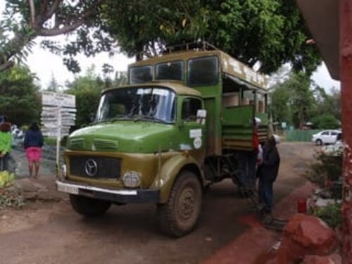 ケニア山 12月27日、朝、昨日合流したKガイド、キリマンから一緒に行動してきたTガイドと共に、7人(内3人は昨日合流)の侍はケニア山に向かって、ナロモルのホテルを出発する。 すごいゴッツイ車に驚く 用意された車は見たこともないゴッツイもので、…