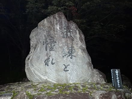 登山口に設置されている有名な 『試練と憧れ』 の石碑。