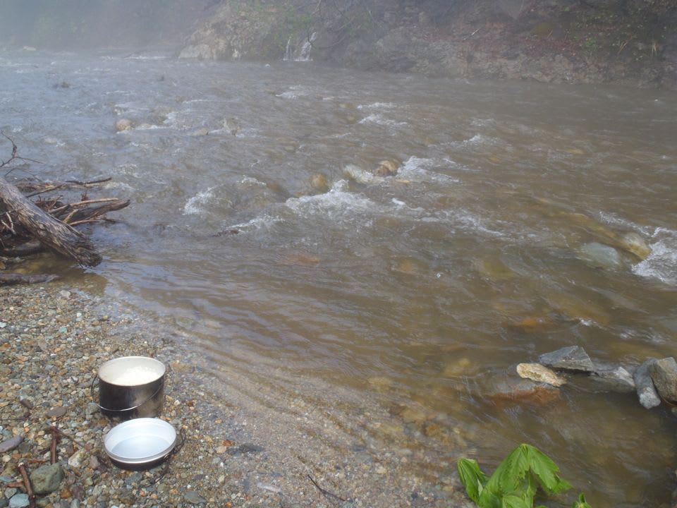 徒渉も濁りが少しあるが水位は膝あたりなので問題なし。