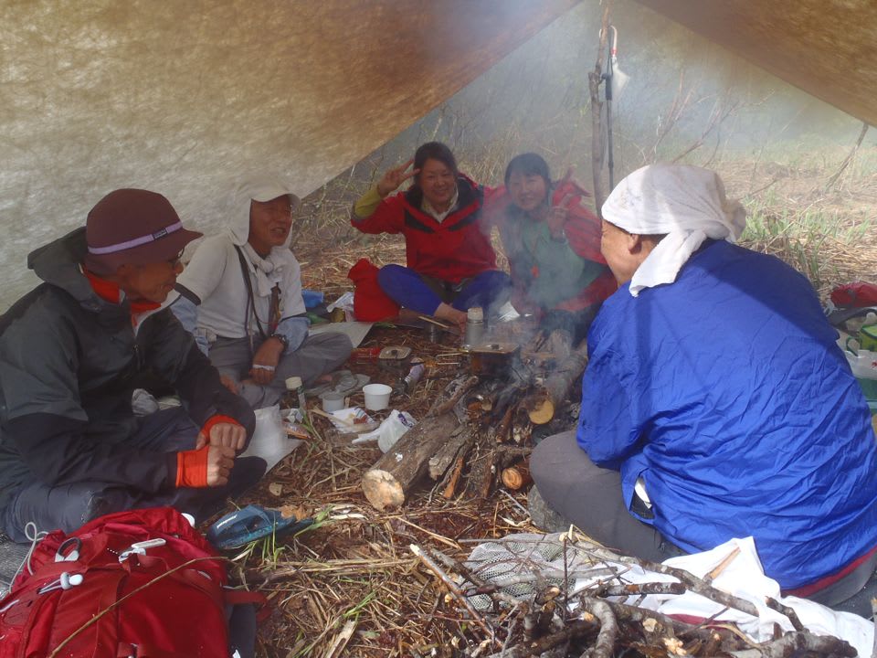 摘みや行動食で一息ついたところで、飯を炊いて、山菜の天ぷらを揚げる。まいうー!