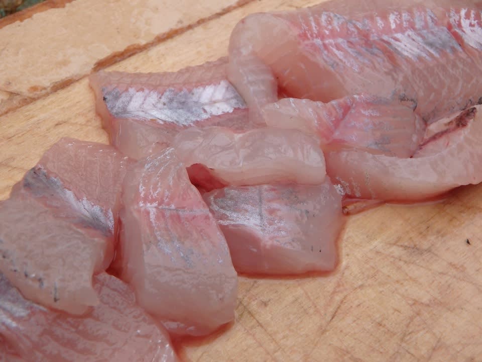 竿を持って釣りに出てなんとか1匹まるまる太ったのイワナを釣る。